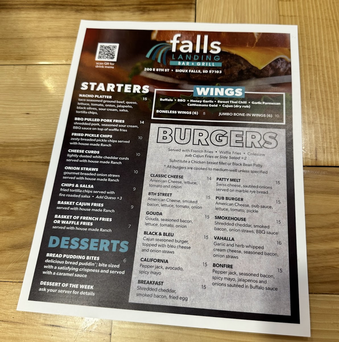 Falls Landing Restaurant Is Now Ode To Food & Drinks! Menu is a culinary journey that offers a delightful mix of fresh flavors and creative dishes. Nestled in the heart of Sioux Falls, SD, at 200 E 8th St, this spot is perfect for anyone craving a delicious meal in a cozy atmosphere. Whether you're in the mood for a hearty entree, a fresh salad, or a satisfying dessert, their menu is packed with options to please every palate.